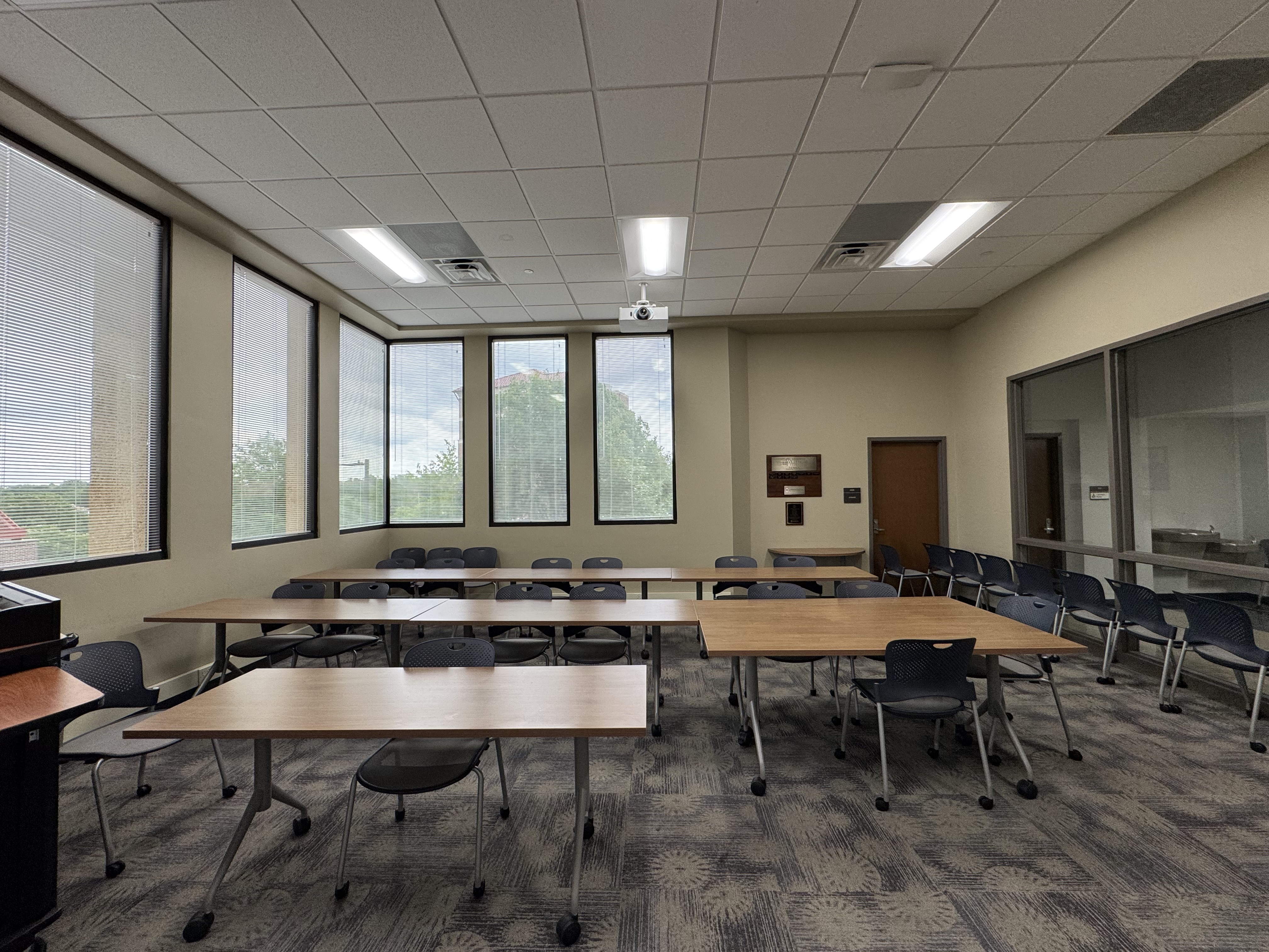 This classroom seats approximately 29 people.