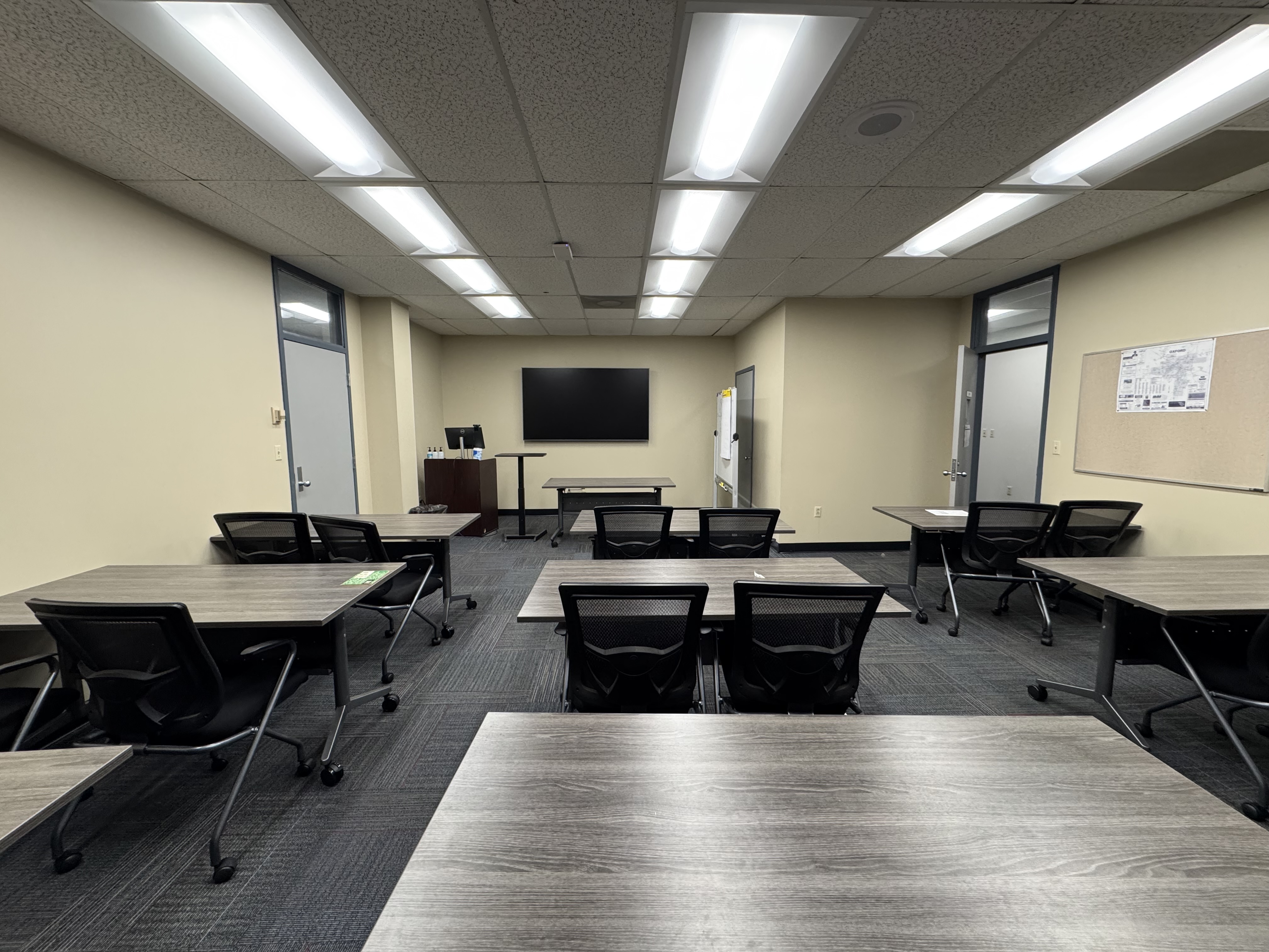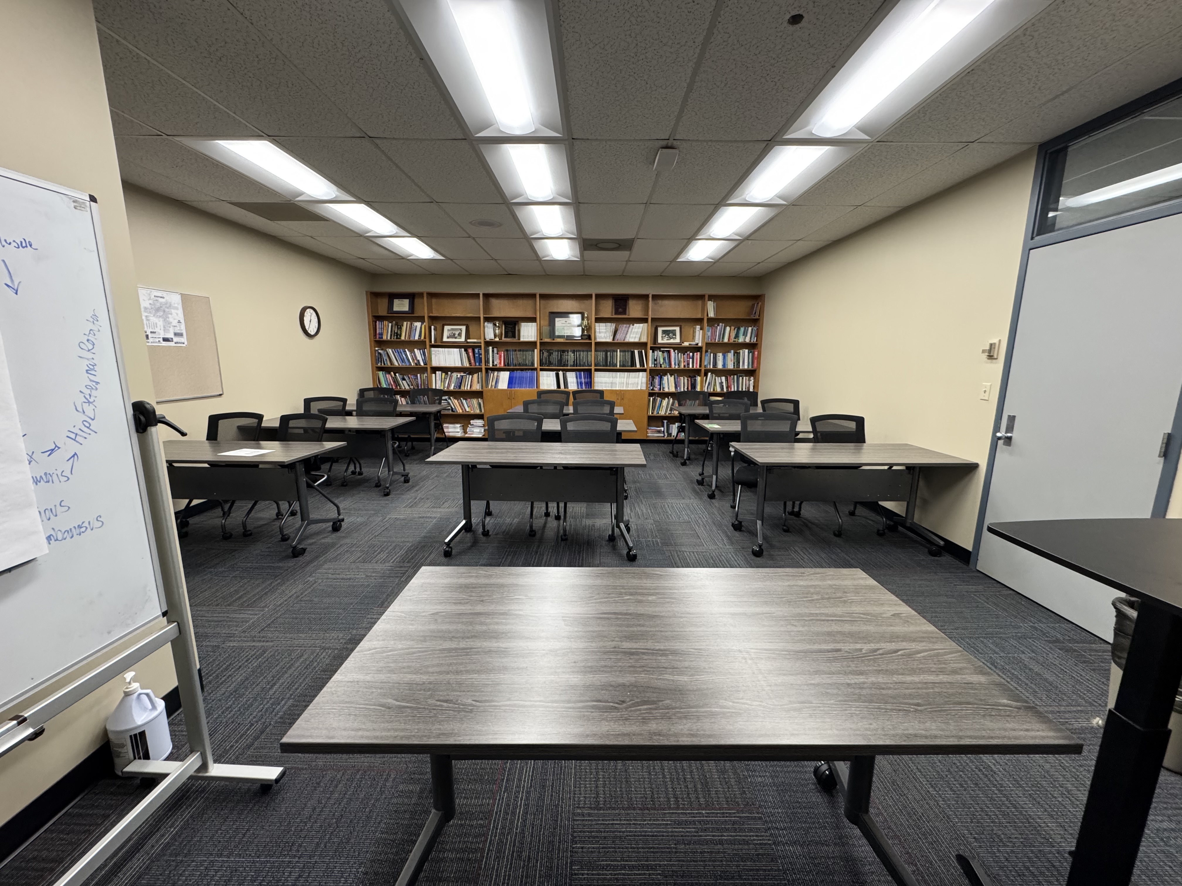 This classroom seats approximately 18 people.